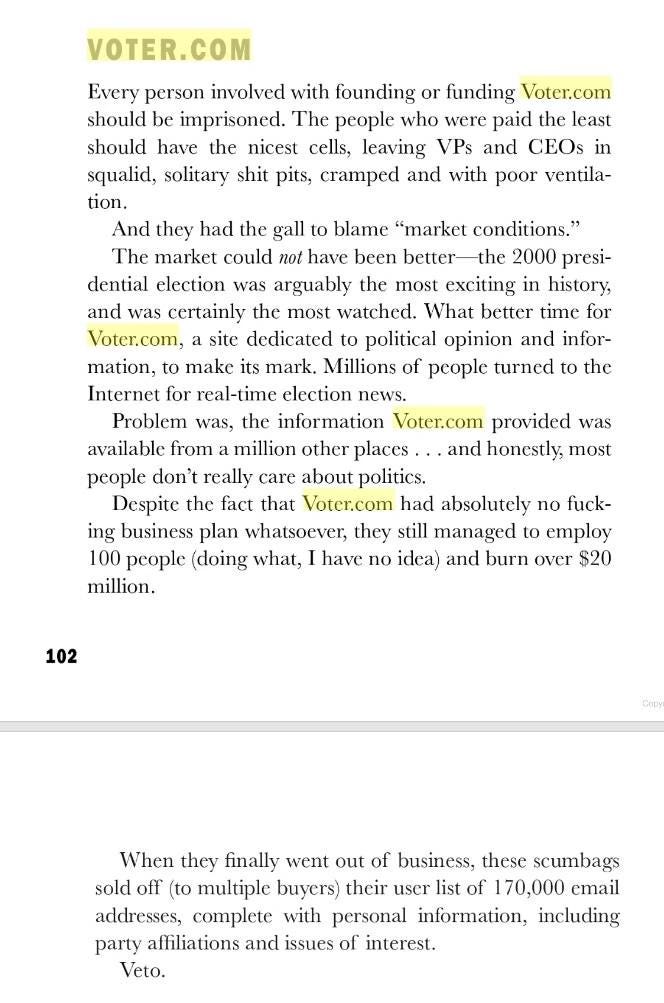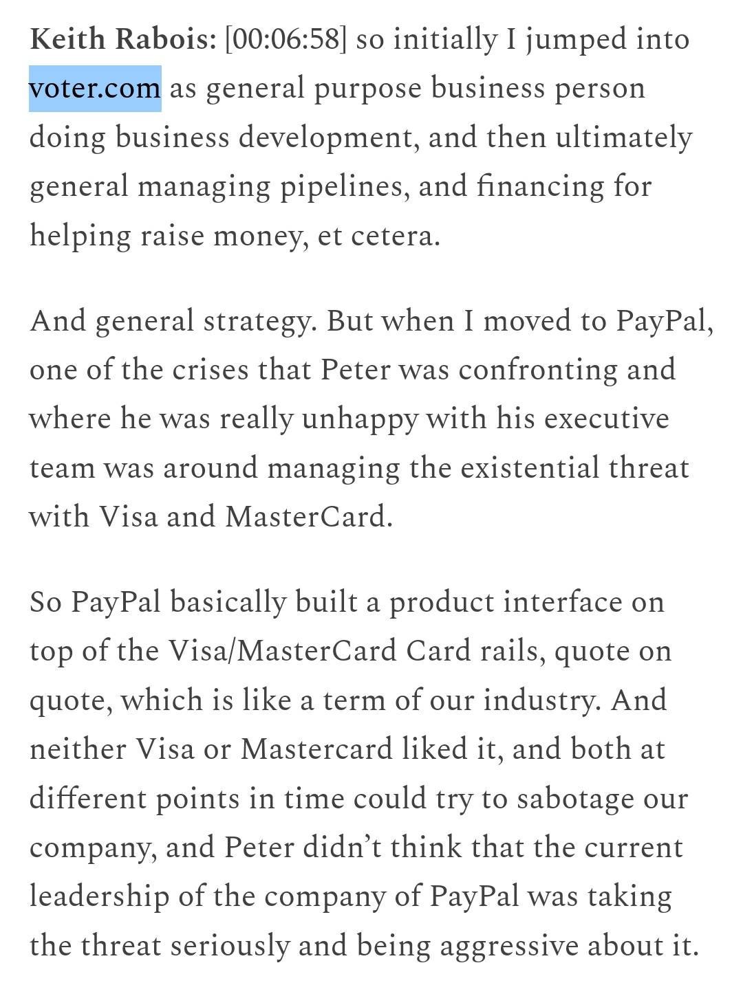 Rabois tries to pretend that voter.com was a startup but it smacks of an intelligence op. Voter.com was harvesting voter data and apparently looking to be an online voting portal.