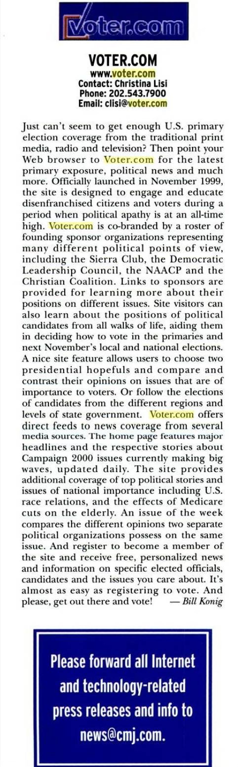 What was Voter.com anyway? There’s not a lot of information out on the Internet and perhaps that’s