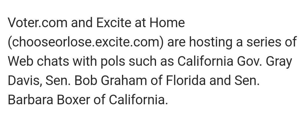 We know that Doug Boxer ran Voter.com but what of the other two politicians mentioned here? There’s Gray Davis — “California’s first Jewish governor” — who was recalled and Senator Bob Graham of Florida who strenuously favored bombing Iran.