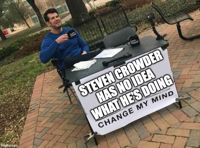 I reached out to Crowder to warn him about what was going on and this was his response. Well, OK.