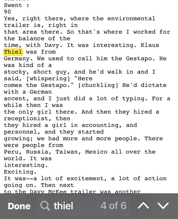 Peter Thiel once told me his father was a truck driver. In fact Klaus Thiel was a mining executive and project manager, who has not become an American citizen. Klaus Thiel’s American colleagues called him “The Gestapo” and Peter visited Klaus at least once in Papa New Guinea.